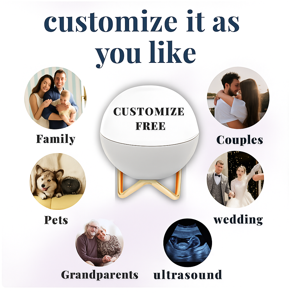 Once uploaded, your special moment plays beautifully inside the glowing glass sphere — like magic. A cinematic keepsake that shines day and night.